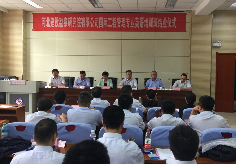 為適應(yīng)公司“走出去”發(fā)展戰(zhàn)略,加強(qiáng)人才隊(duì)伍建設(shè),公司委托石家莊鐵道大學(xué)舉辦了第二屆國(guó)際工程管理專業(yè)英語(yǔ)培訓(xùn)班,歷時(shí)28天,2019年5月13日,圓滿完成了各項(xiàng)培訓(xùn)課程,在石家莊鐵道大學(xué)第九實(shí)驗(yàn)室舉行了結(jié)業(yè)典禮。出席結(jié)業(yè)典禮的有:公司總經(jīng)理李華偉、石家莊鐵道大學(xué)黨委副書記李曉華、公司人力資源部、石家莊鐵道大學(xué)繼續(xù)教育學(xué)院和外語(yǔ)系的有關(guān)領(lǐng)導(dǎo)、老師,全體學(xué)員。