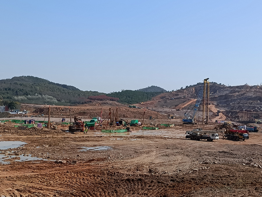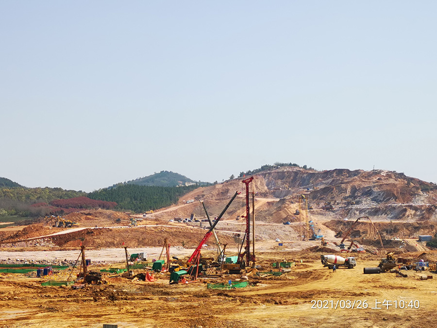本工程位于廬江縣冶父山鎮(zhèn)石山社區(qū),廬江東北方向約17公里,東南側(cè)臨G346國(guó)道。廠區(qū)建設(shè)總占地面積為199074平方米,本次廠區(qū)擬建物包括生產(chǎn)線(xiàn)、庫(kù)房和輔助設(shè)施等。工作內(nèi)容主要包括測(cè)量放線(xiàn)、鉆孔灌注樁旋挖成孔、鋼筋籠制作及安放、砼灌注、鉆渣外運(yùn)、強(qiáng)夯施工、樁基低應(yīng)變及鉆芯取樣檢測(cè)、強(qiáng)夯檢測(cè)等。