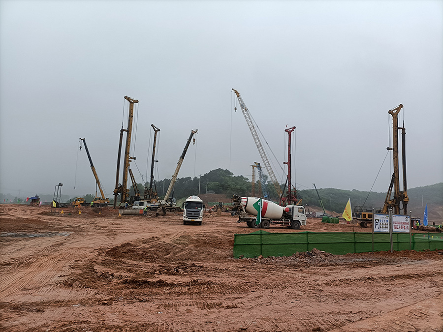 本工程樁基實(shí)際開(kāi)工時(shí)間為2021年03月11日,竣工時(shí)間為2021年7月15日,共完成混凝土灌注量約12800m3,直徑800mm、樁長(zhǎng)約13-26m鉆孔灌注樁183根,直徑1000mm、樁長(zhǎng)約13~28.6m鉆孔灌注樁529根,直徑1400mm、樁長(zhǎng)約18~25.5m鉆孔灌注樁54根,總計(jì)766根鉆孔灌注樁,強(qiáng)夯64917平米。經(jīng)抽樣檢驗(yàn)297根樁基均達(dá)到合格等級(jí),滿(mǎn)足驗(yàn)收要求。單樁豎向抗壓試驗(yàn)選取8根,鉆芯法取樣8根樁,淺層平板載荷試驗(yàn)選取15點(diǎn),承載力及強(qiáng)度均滿(mǎn)足設(shè)計(jì)要求。